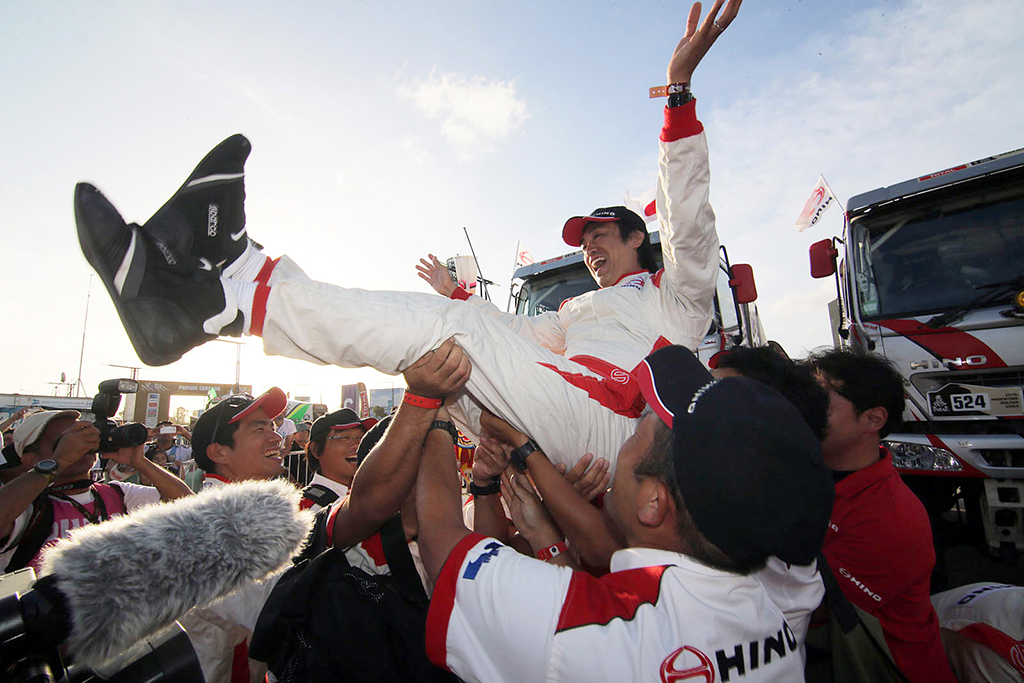 Йосимаса Сугавара: «Я чувствую облегчение сейчас, когда гонка позади, и мы достигли тех результатов, о которых мечтали. На протяжении всего маршрута я чувствовал себя хорошо и был уверен в своих силах. Я убежден, что те усовершенствования автомобиля HINO, которые были сделаны специалистами при подготовке к гонке, повлияли на отличный результат нашего экипажа».