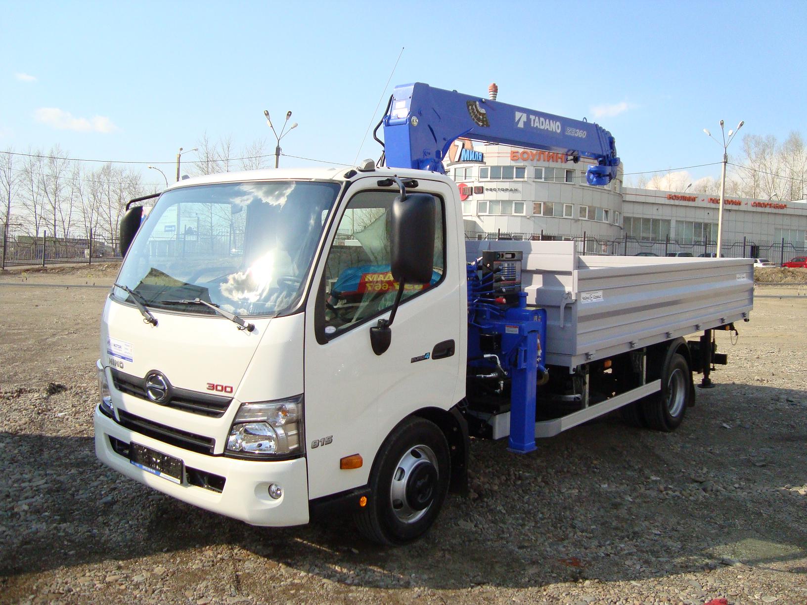 HINO 300 с самосвальной установкой и КМУ