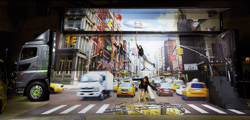 Стенд HINO также поражал воображение: чего стоила только кабина HINO Profia, превращенная в оживленную улицу, или пол под самосвалом HINO Dutro, изображающий «подземный мир» Токио? В дополнение ко всему этому, к услугам гостей была обширная развлекательная программа, а на интерактивной сцене выступали приглашенные музыканты.