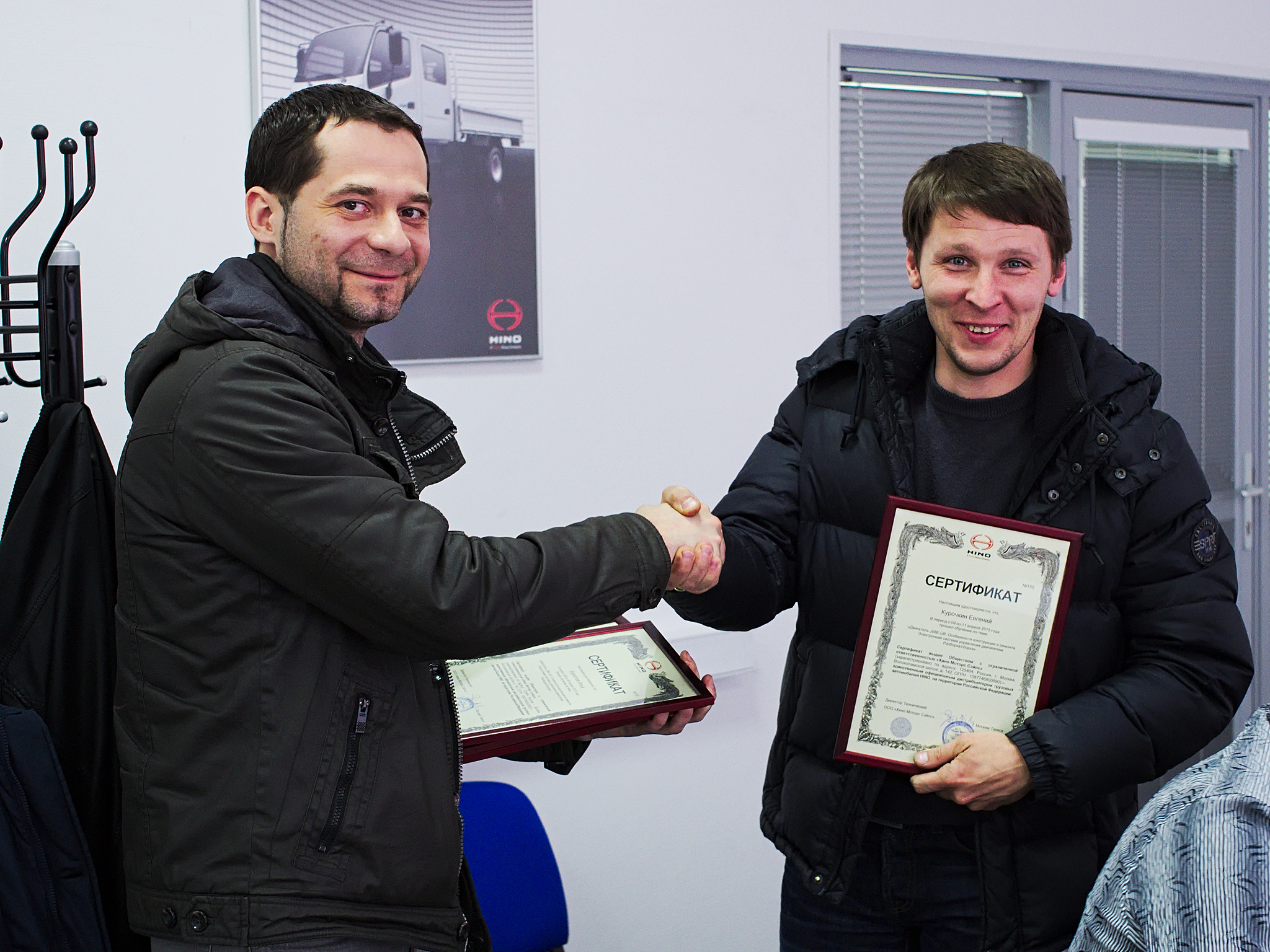 По результатам обучения каждому представителю ДЦ HINO был вручен именной сертификат, подтверждающий прохождение обучения на тему «Двигатель HINO J08E-UR».