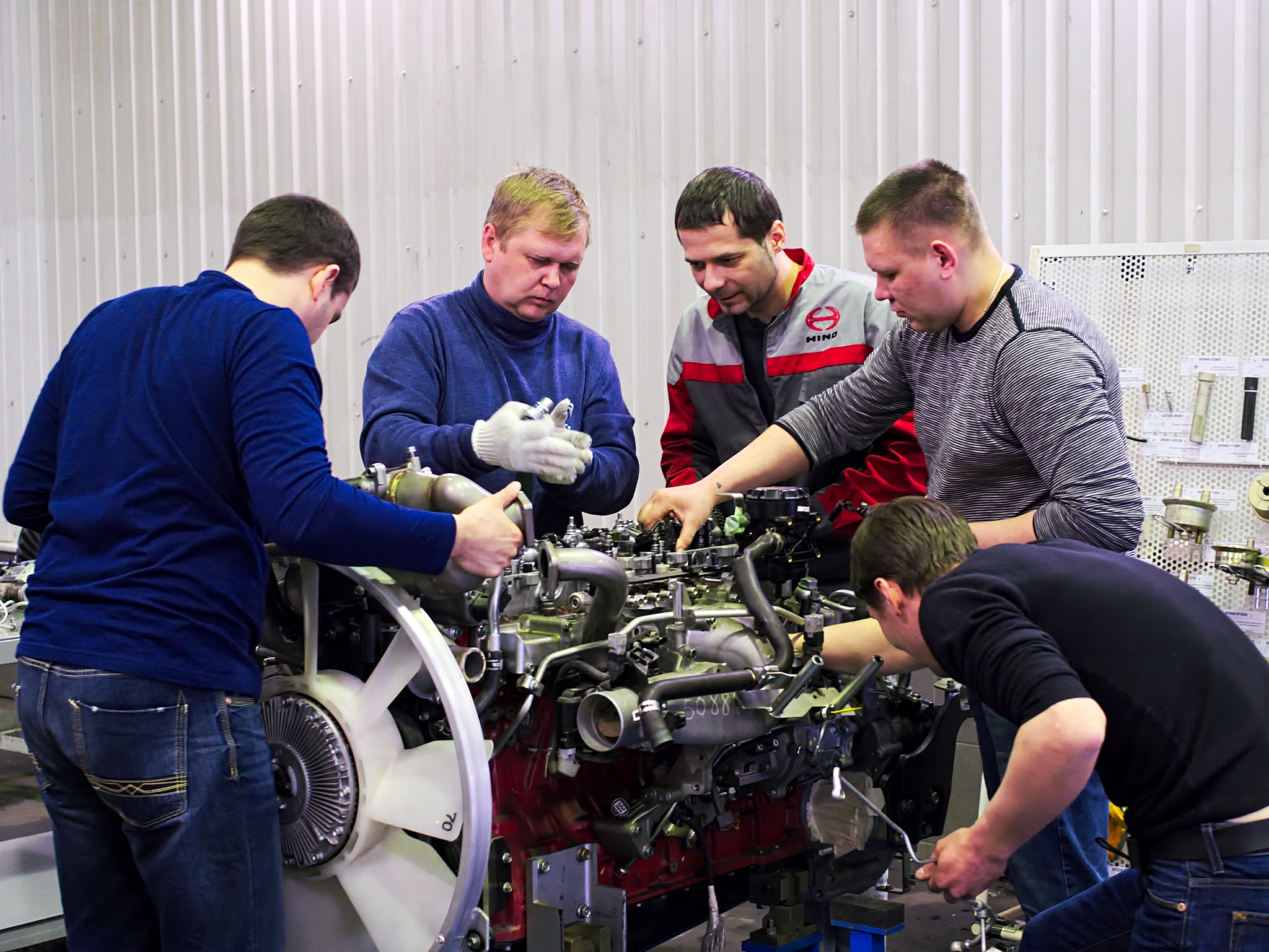 В рамках программы дилерами был пройден теоретический курс «Основные особенности конструкции и ремонта двигателя J08E-UR». Также специалисты получили базовые знания по электронной системе управления и системе питания Common Rail.